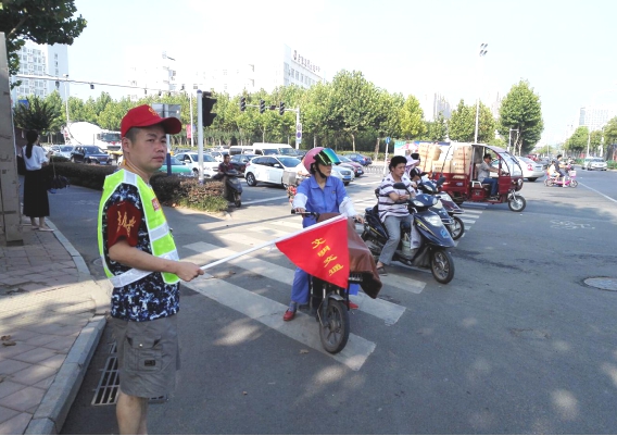 2016年8月2-3日,在繁华大道与北京路交口,一群头戴红色志愿帽、身穿荧光马甲的交通志愿者协管员格外引人注目,天气虽然炎热,合肥路桥公司志愿者依旧坚守岗位,劝导着过往车辆和路人们文明出行。