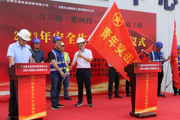 合肥交投合六项目公司副总经理周恒星主持活动仪式。启动仪式上,陈风明代表建设单位向项目青年突击队授旗,杨枫代表施工单位向项目党员先锋岗授旗,项目经理孙巍代表项目部发起“安全生产月”活动倡议。