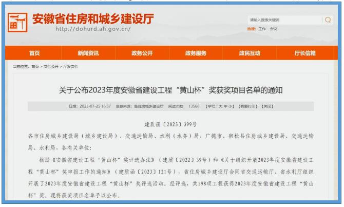 据了解,“黄山杯”是安徽省建筑行业建设工程质量的最高荣誉奖,入选项目均为质量过硬、品质优良建设工程。除获得“黄山杯”奖外,汤柯路项目还荣获全国市政工程建设优秀质量管理小组三等奖、安徽交通优质工程奖、安徽省农村公路品质示范路、交通运输部“2022年度十大最美农村路”提名。