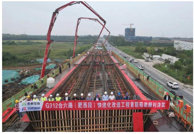 9月22日16时30分,G312合六路(肥西段)通航大道上跨桥首联箱梁底腹板顺利浇筑,这标志着该桥梁正式进入上部结构施工,项目实施进入新的阶段。