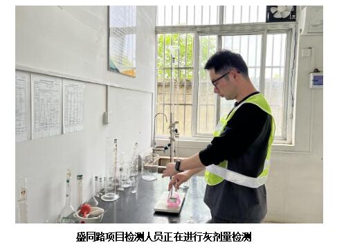 在S351盛同路项目,检测人员正进行土方施工检测,从配置试剂到数据填写,一丝不苟。他们说:“简单的事情重复做,重复的事情精准做,是小事也是大事。灰剂量、压实度检测是路基施工中最常见的两项检测参数,日复一日的工作,将标准化做到极致,重复操作是常事,却也是质量的大事”。