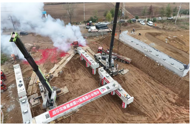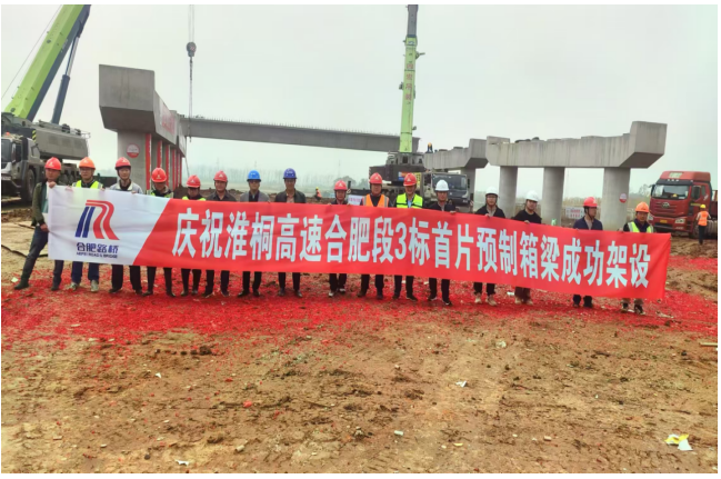 2024年11月10日上午,在合肥路桥淮桐高速公路合肥段3标施工现场,机器轰鸣,一片繁忙。随着指挥人员一声令下,项目花岗西互通K97+943.2大桥首件预制箱梁精准落位,这标志着合肥路桥淮桐高速3标项目正式进入桥梁上部结构施工。