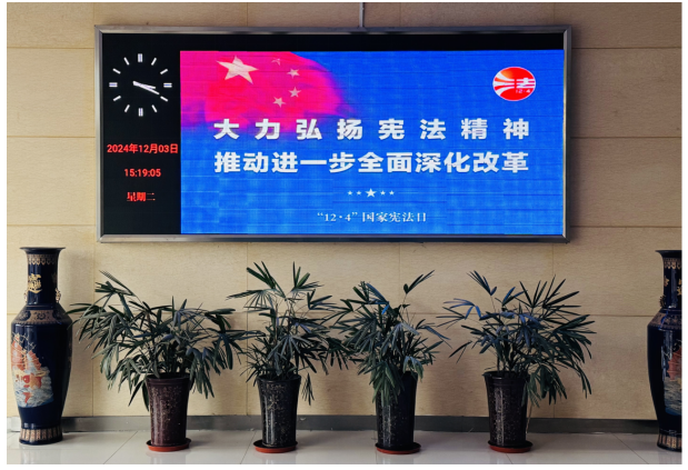 今年“宪法宣传周”以“大力弘扬宪法精神,推动进一步全面深化改革”为主题,在“宪法宣传周”期间,公司党委书记杨枫带领支部党员,学习习近平新时代中国特色社会主义思想特别是习近平法治思想、党的二十届三中全会精神、加强党员普法教育,普及宪法知识,提高党员运用法治思维开展工作的能力,增强履职能力。