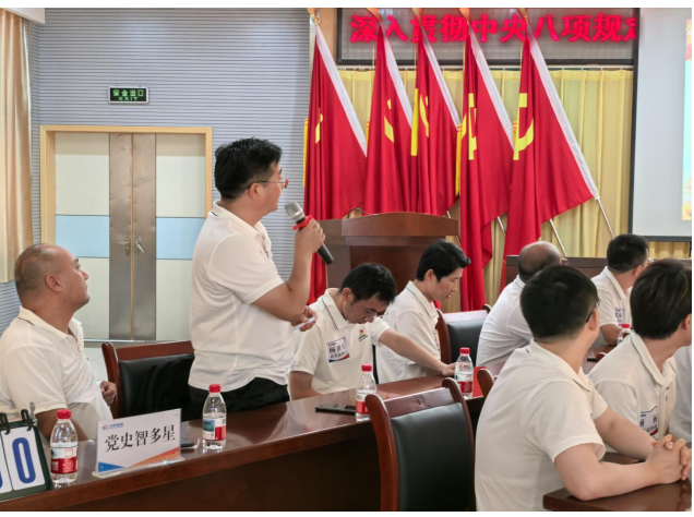 比赛过程中,6支党支部代表队,24名参赛选手以饱满的热情投入到这场知识的比拼之中。现场气氛热烈非凡,各参赛队伍精神抖擞、斗志昂扬,踊跃作答,充分展现出扎实深厚的党史知识功底。