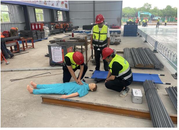 为提高对中暑症状的正确辨别,及时科学的正确处置和抢救中暑人员,加强项目在紧急情况下的抢救组织和协调能力,避免安全事故发生,日前,龙池路项目部开展了防中暑应急演练活动,进一步提高了项目全体人员对中暑危险的认知和应对能力。