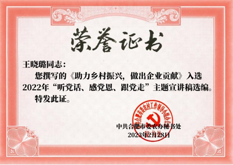 亚洲欧美日韩综合色 > 党群廉政 > 详细新闻近日,由市委农办、市委宣传部等七部门联合举办的“听党话、感党恩、跟党走”主题教育活动宣讲稿选编结果正式揭晓。合肥路桥王晓璐同志撰写的《助力乡村振兴,做出企业贡献》成功入选。