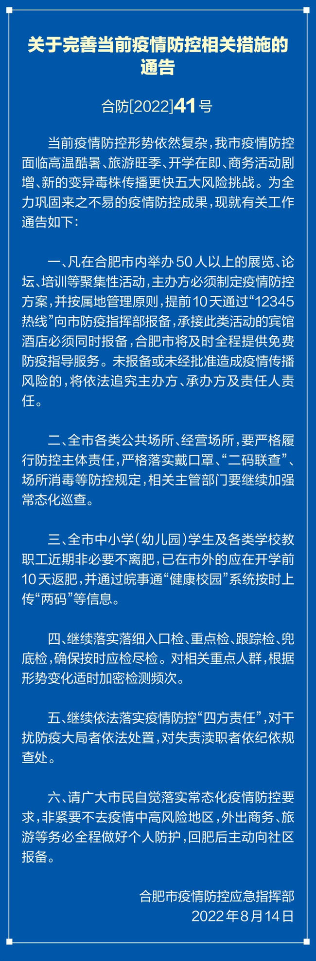2022-08-14:合肥疫情防控41号通告
