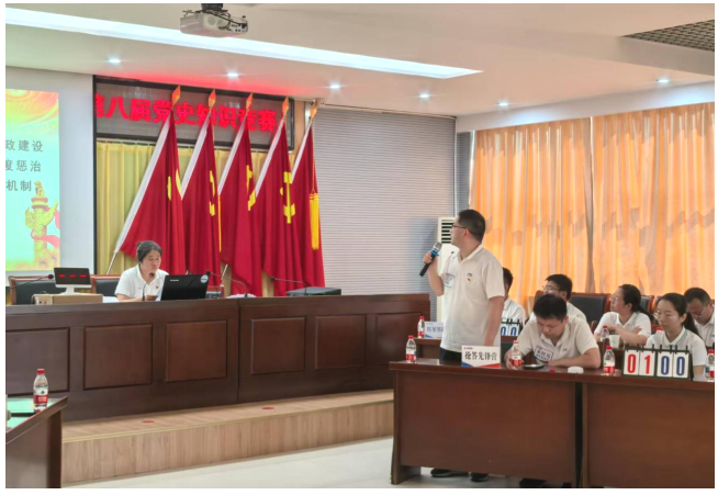 比赛过程中,6支党支部代表队,24名参赛选手以饱满的热情投入到这场知识的比拼之中。现场气氛热烈非凡,各参赛队伍精神抖擞、斗志昂扬,踊跃作答,充分展现出扎实深厚的党史知识功底。