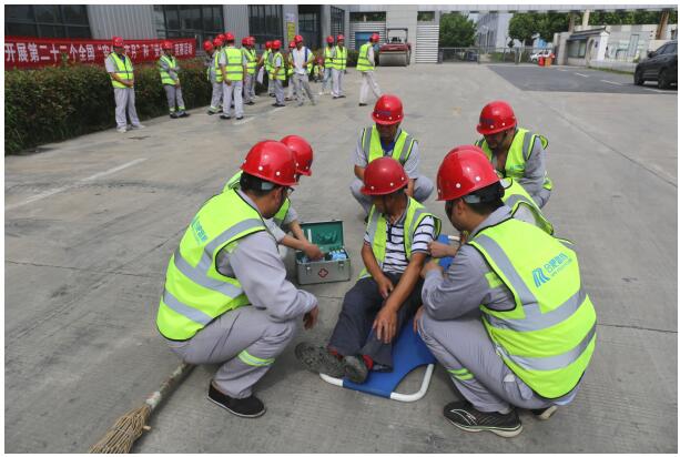 活动首先,指挥长向全体人员普及了高温应急救援知识,在工作人员明确各自工作职责及注意事项后演练正式拉开序幕。演练模拟了一名现场环卫人员在作业过程中,由于高温中暑的紧急处理过程,各小组分工协作、密切配合、反应迅速,全面展示了事故上报、抢险救援、医疗救护等各个环节,通过演练切实提高全员安全生产意识,确保做到“人人讲安全 个个会应急”。