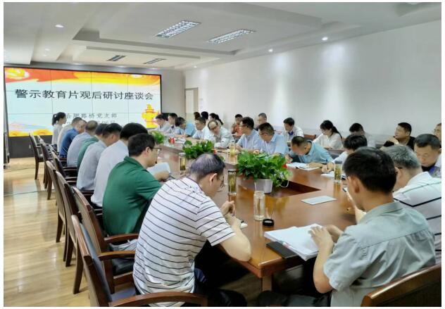 为进一步筑牢思想防线,强化企业党员干部的廉洁从业意识,6月26日,合肥路桥组织全体党员召开廉洁警示教育研讨座谈会,与会同志结合此前观看的警示教育宣传片,以及各自岗位职责进行了交流发言。