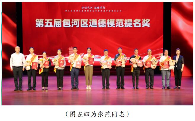 德润包河,温暖同行。2023年9月13日,第五届包河区道德模范发布暨先进事迹报告活动在包河凤凰剧院举办,公司张燕同志荣获第五届包河区道德模范提名奖。